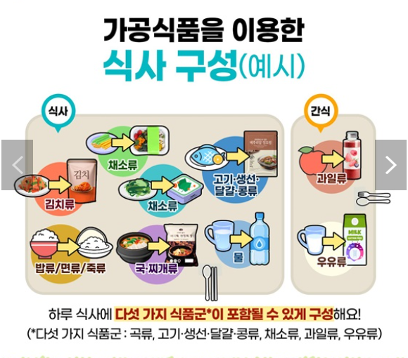 ■ 가공식품은 무조건 나쁘다고 생각하시나요? 식사 준비가 힘든 상황이거나 영양소 함량, 특별한 관리가 필요한 경우 밀키트, 가정간편식, 고령친화식품, 특수의료용도 식품 등을 이용하여 영양의 균형을 맞추어 먹을 수 있어요.