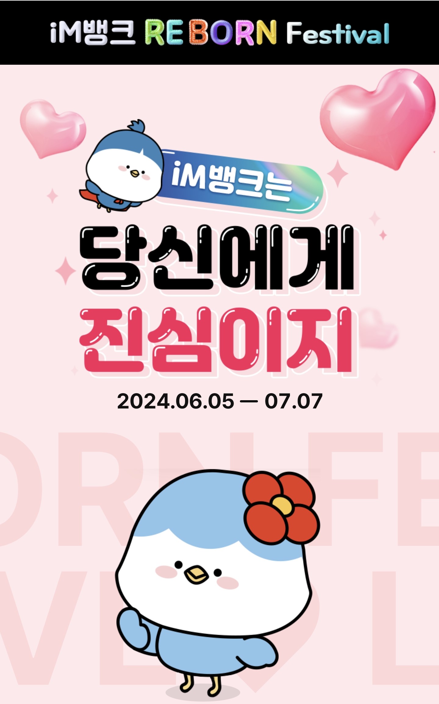 DGB대구은행은 시중은행으로의 전환을 기념하여 'iM뱅크 Re-Born Festival' 캠페인을 시작하고, 그 주력 상품인 '고객에게 진심이지 적금'의 출시를 앞두고 있습니다. 이번 상품은 6월 5일부터 7월 7일까지 32만좌에 한정하여 판매될 예정입니다.