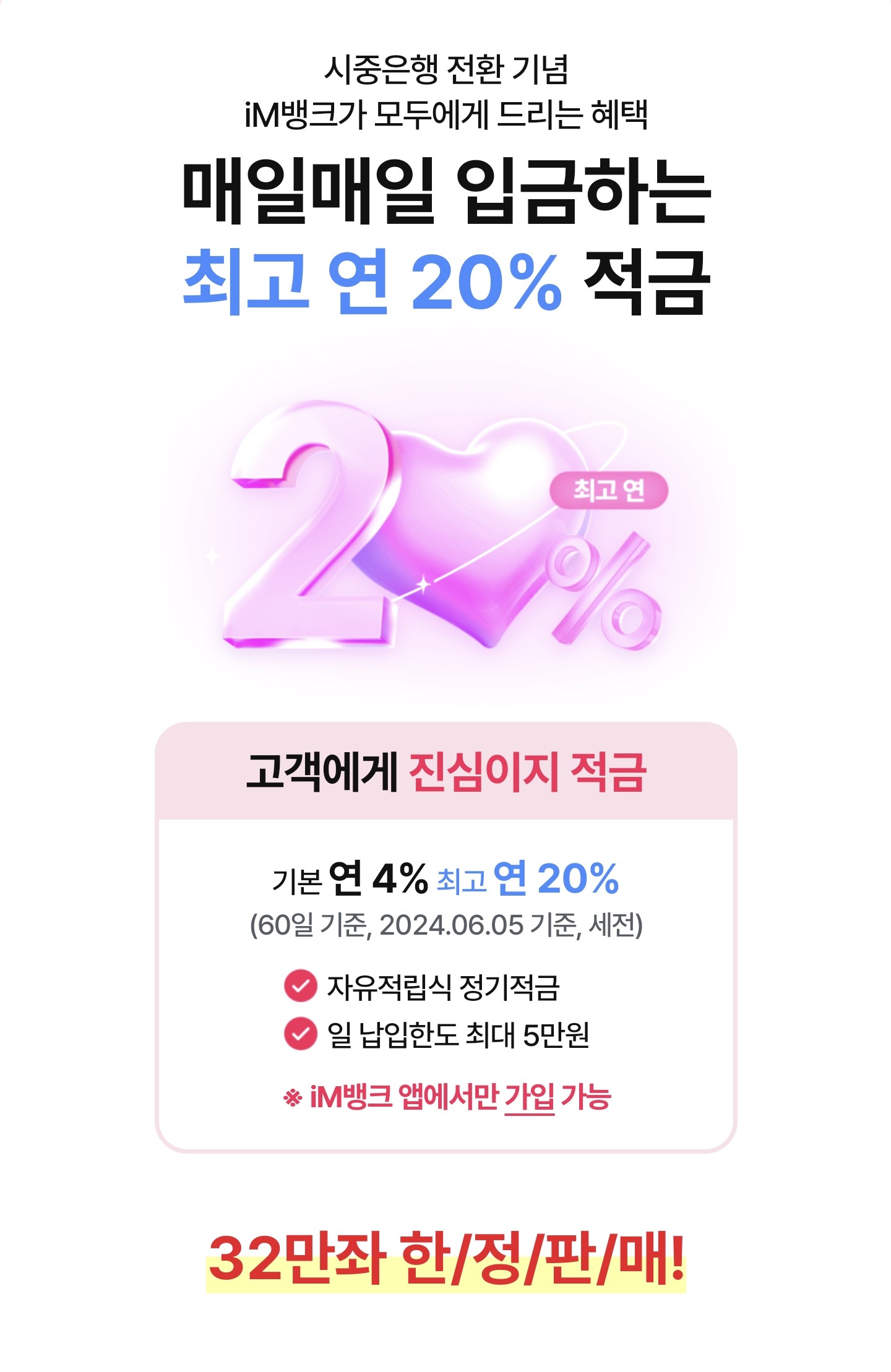 최고 연 20% 금리의 파격적인 적금 상품 선보여