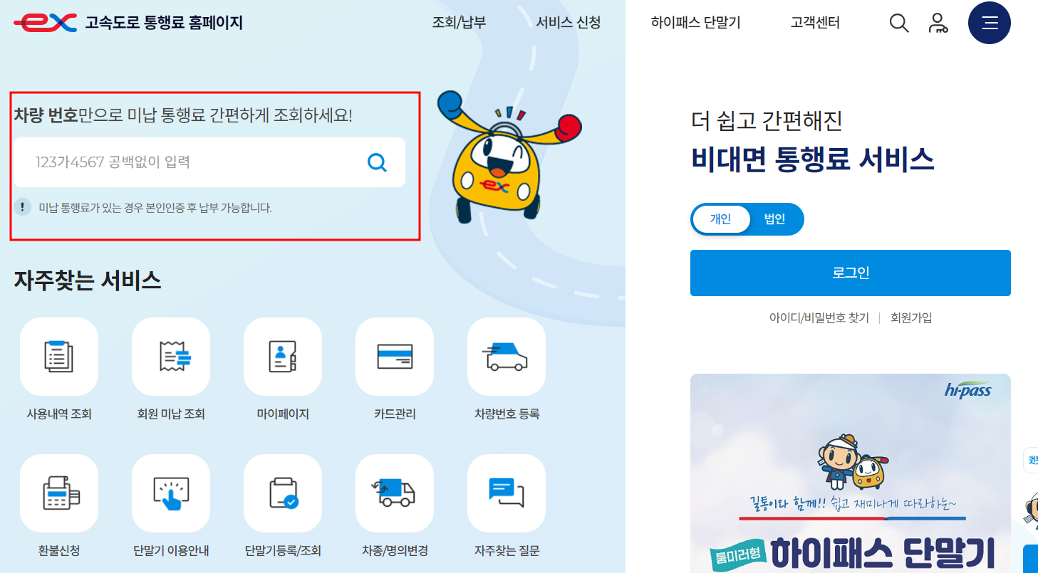 단말기가 작동하지 않거나 하이패스 카드에 문제가 생겨 통행료를 지불하지 못했다면 고속도로 통행료 홈페이지에 접속해 미납 잔액을 확인하고 결제하면 됩니다.