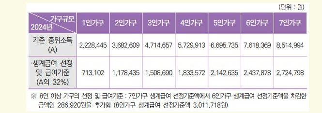 ● 2024년 생계급여 선정 및 급여 기준