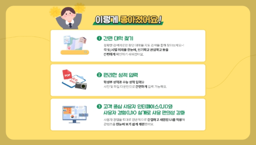 또한 학년별, 입시 시기별로 차별화된 정보를 제공할 뿐만 아니라 기존에 수동으로 입력해야 했던 학생부 성적과 모의고사 성적을 정부24 홈페이지와 한국교육과정평가원의 수능 성적표 발급 시스템에서 내려받아 자동으로 입력할 수 있는 기능도 추가했다.