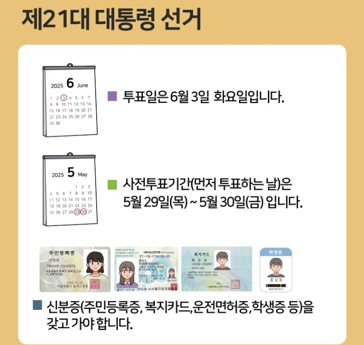 - 사전투표일: 2025년 5월 29일(목) ~ 5월 30일(금)