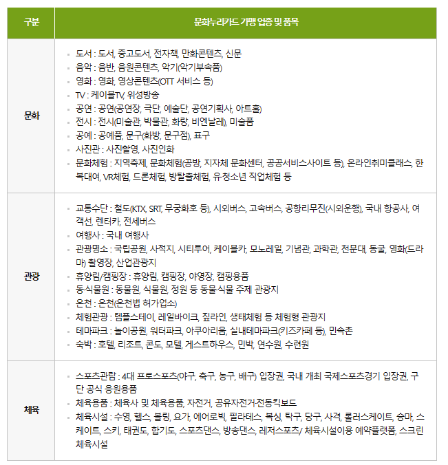 문화누리카드는 국민들의 삶의 질 향상과 문화격차 완화를 위해 기초생활수급자, 차상위계층을 대상으로 문화예술, 국내여행, 체육활동을 지원하는 카드입니다.