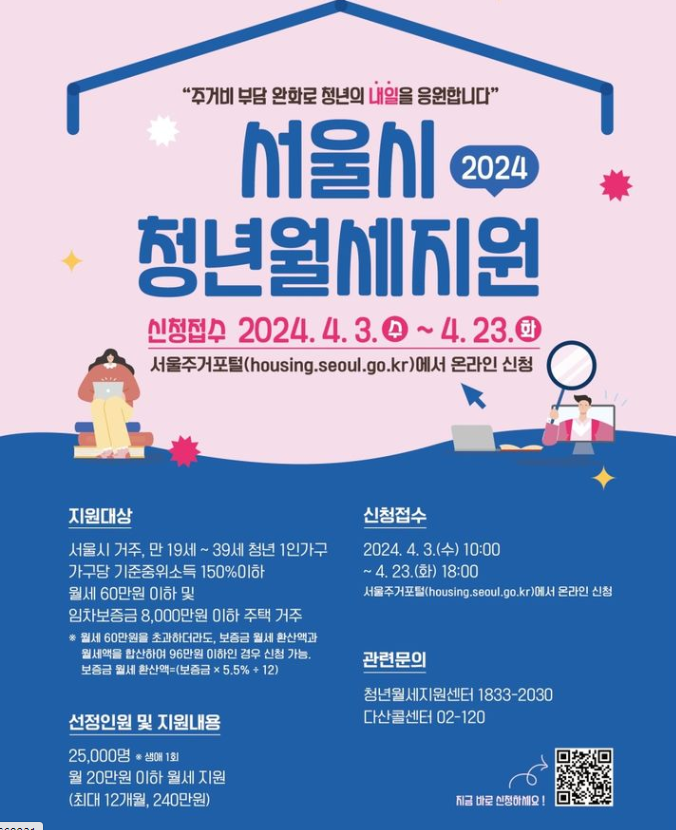 서울시가 청년층의 주거비 부담 완화를 통해 청년 주거 수준 향상을 이끌어 사회집을 돕고 생애 다음단계인 내집 마련이나 결혼, 출사느 양육으로의 성정을 지원하기 위해 월세지원이라는 정책을 마련했습니다.