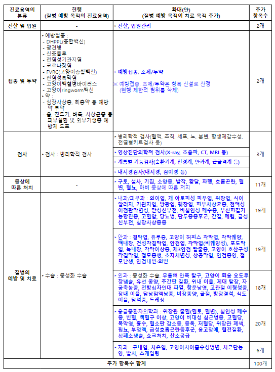 <반려동물 진료비 부가세 면제 확대 세부항목>