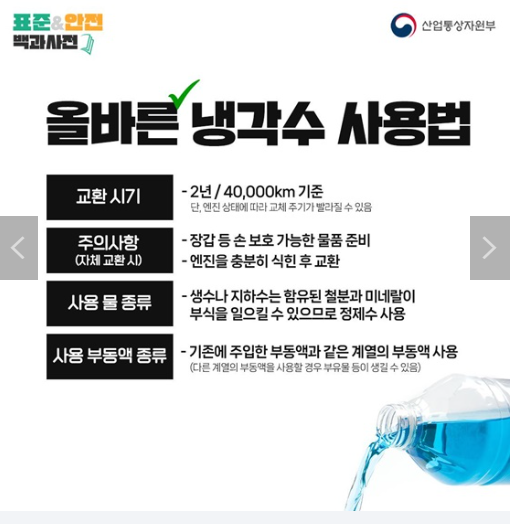 자동차의 냉각 시스템 유지를 위해 여름에는 냉각수, 겨울에는 부동액을 주기적으로 교환해야 합니다.