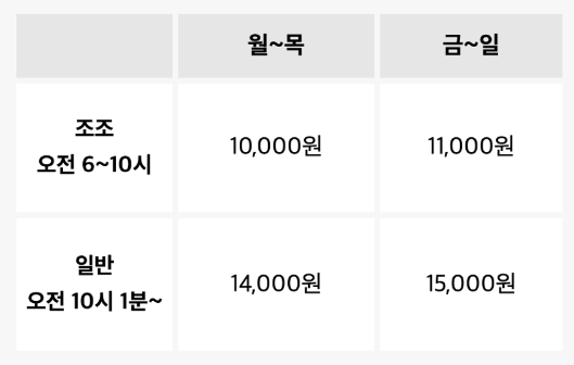 - 상영관마다 가격과 모닝/브런치 시간이 다를 수 있어요.