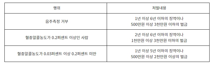 술에 취한 상태에 있다고 인정할 만한 상당한 이유가 있는 사람으로서 경찰공무원의 음주측정에 응하지 않으면 1년 이하의 징역이나 500만 원 이상 2천만 원 이하의 벌금에 처해집니다.