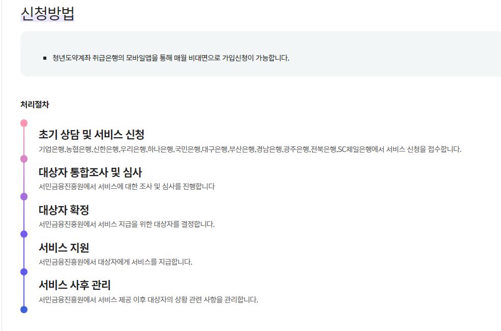 만기 5년 동안 매월 50만원 한도내에서 자유롭게 납입 가능 한 정부 지원형 적금상품으로 청년의 중장기 자산형성을 지원한다.